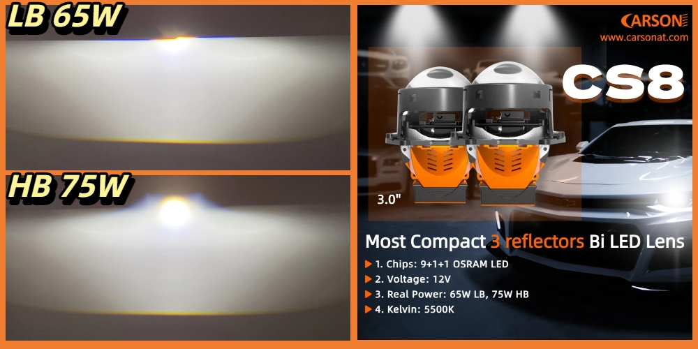 The Carson CS8 Bi-LED lens is equipped with 9+1+1 OSRAM LED chips.
