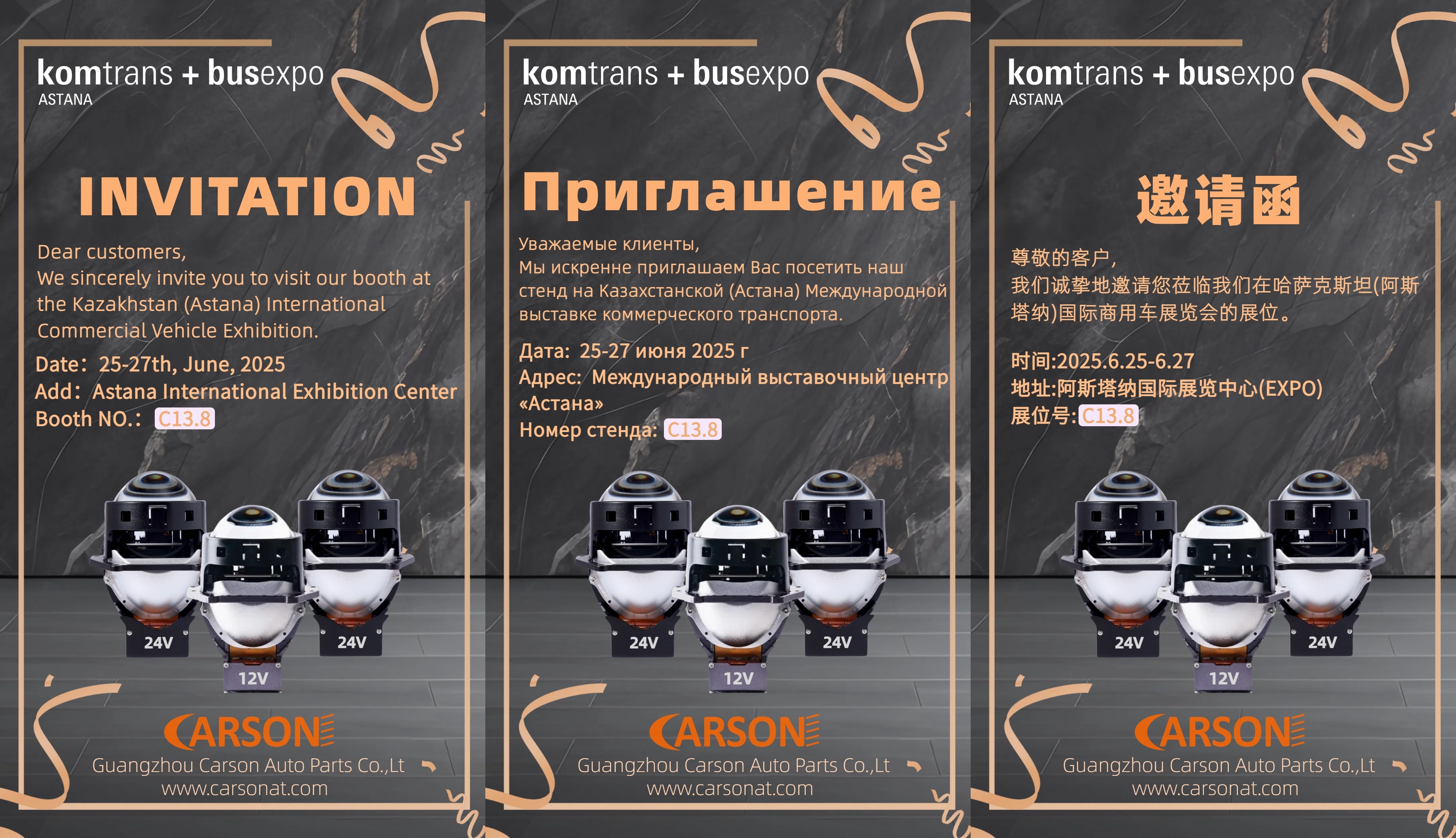 We warmly invite you to visit our booth at the upcoming Kazakhstan (Astana) International Commercial Vehicle Exhibition, where we will present various newest and premium car LED headlights bulbs and Bi LED lenses, designed to meet a wide range of auto parts dealers and wholesalers needs.